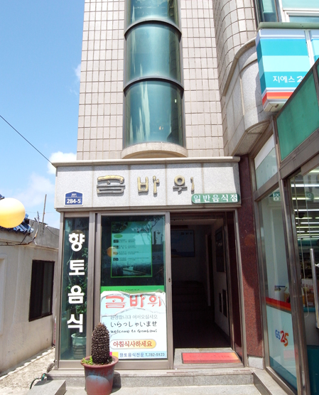 它的外观是这样的,石頭熊海鮮豆腐鍋就在城山日出峰山腳下的一群商店裡很容易找到因我们一停好车在城山日出夆的carpark..我就看到这个建筑了,它是在GS25上面哦!从旁边的楼梯走上去就是了..