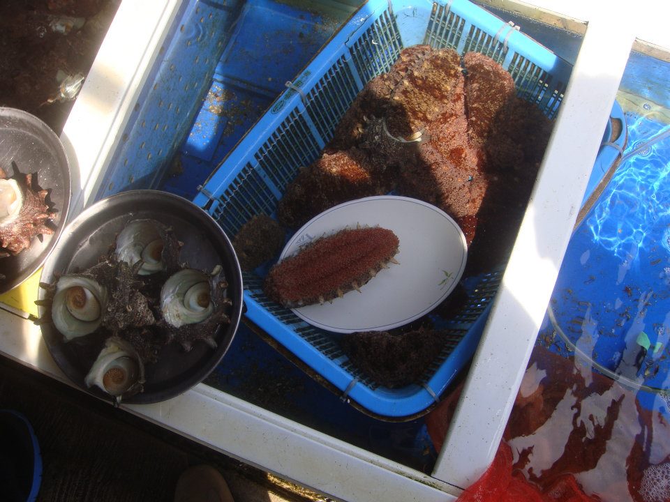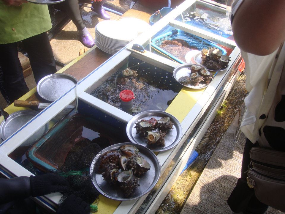 表演开始了,一起合唱一首歌,我听不懂他们在唱什么..真佩服哦!当中还有70多岁的海女哦!开始下海咯!只是配带一些简单的潜水工具...
