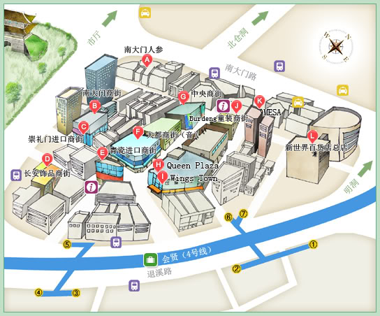 推荐参观:南大门商街(남대문상가南大门商街历史悠久,不仅商品种类繁多,还出售其他地方难以买到的物品,并以此而闻名。商品的种类数不胜数,尤其是可以买到其他地方难以找到的照相机零部件,还出售全国各地的各种特产。