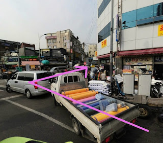 左轉進去後走一段都是運動用品的街,接著碰到一個像是菜市場入口時,