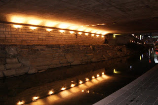 这餐吃到连我妈和爸都赞好..我爸说那么多天今天是最好吃的了...吃饱了就到清溪川去走走,雖然清溪川很長,但最漂亮的地點在地鐵鐘閣站5號出口..本来我们是要走去的但好像走了蛮久的都还看不到尽头..最后还是放弃了...
