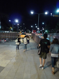 我们走了好久都没到啊!也只好停在一边把刚刚买的strawberry拿去厕所洗,再到seven eleven去买一些水,我们就在那里野餐起来了..对了还有加上早上买的issac面包..在namsan 2附近就有一间issac了..我觉得要现做现吃才好吃,我们是打包拿回去namsan2吃,当我吃的时候,面包都软掉了,没有很好吃还是那时在济州岛的比较好吃..