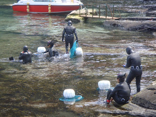 表演开始了,一起合唱一首歌,我听不懂他们在唱什么..真佩服哦!当中还有70多岁的海女哦!开始下海咯!只是配带一些简单的潜水工具...