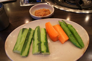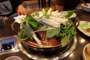 其实刚开始按排到济州岛去,我只顾着行程,吃方面我都没认真在找..还好到最后我发现了这点就赶紧上网找一些餐厅,因有人介绍的好过我们自已乱找的,一方面有人介绍的去到那里就比较容易点餐了..在韩国不是每家都有英文/华文或是有图的menu哦!为了方便或叫些不知名的食物还是上网找先比较有保障的..选了这家吃猪骨火锅,这个看起来跟那个泡菜锅很像但这个没那么辣,里面有很多的猪肉哦!很好吃的猪肉哦!这是我吃过最多猪肉的一次,一点都没有猪慅味哦!这个也好便宜哦!我们叫了两锅加白饭才70,000多won...