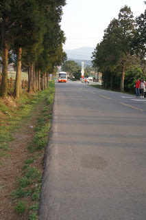 天色还早大慨是4点吧!但大家都累了,所以其他的景点都不去了,就打算回到济州市去那个神秘道路去..这个本来在第一天就去的了但我们不大懂它的位子,还是去问了daedong hotel的那个女的,她就教我们怎么走...原来它就在love land前面的那条路直走一些就看到的..大多旅行巴士都会到那里去的..到底有它有多神秘呢?就是啊在那么一段路里只要把你的车引擎关掉,车子自已会慢慢的往下走哦!我们还用水倒在一条平路上面,那个水是向下流哦!因通常是向左或右流的..
