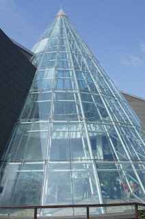 没有拍很多的照片,对了在里面还有一片很好笑的镜子,怎么好笑法,从外表看就是很普通跟我们家的没两样,它那里写着叫你动动你的舌头看你的舌头也卷到什么程度..我就觉得应该有效果就在那里卷看看,怎知等我走到镜子后面的一幅墙,就看到你当时在卷舌头的丑样了..就是说当你在卷舌头时,可能后面就有人在看着和笑你了...看完了就到泰迪熊那里去了,就过个马路就到了在声音馆的隔避,当时我们还找不到,问了人才知道就在附近...很容易认的就是它的建筑外观有个像pyramid是用玻璃做成的..